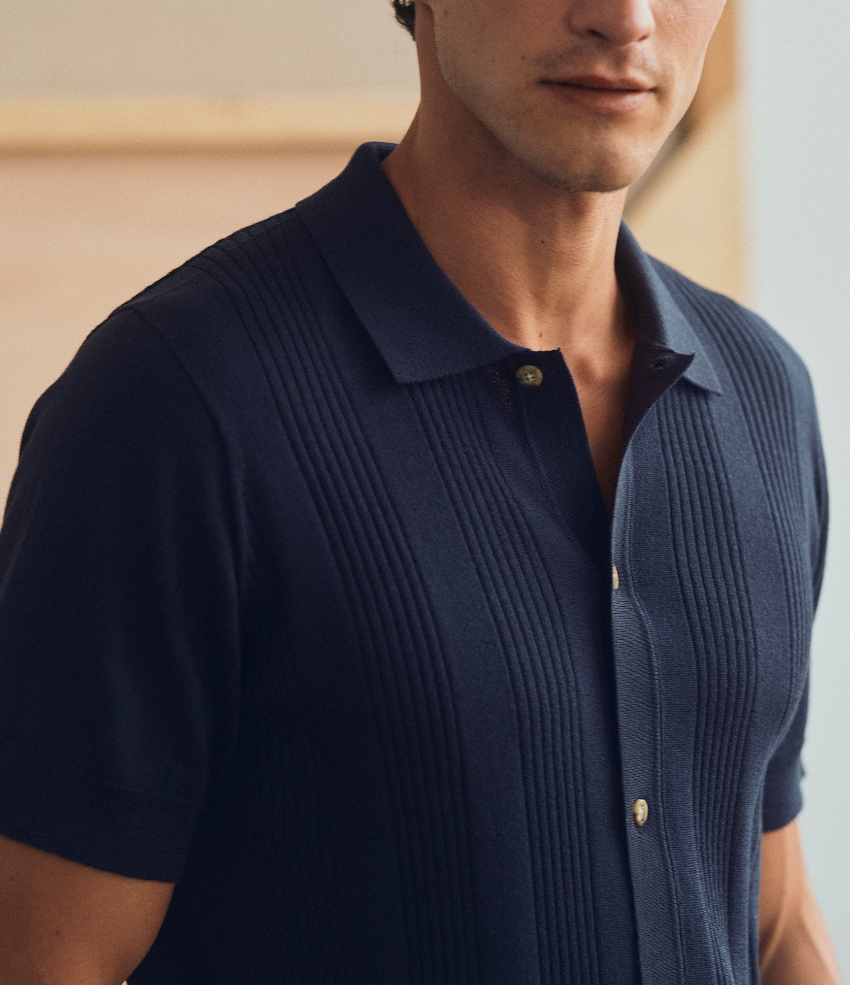 With its camp collar and vertical knit pattern, the Praia Shirt channels a nostalgic, holiday state of mind. Think sun-soaked piazzas, cold drinks by the water, and no to-do list in sight.
