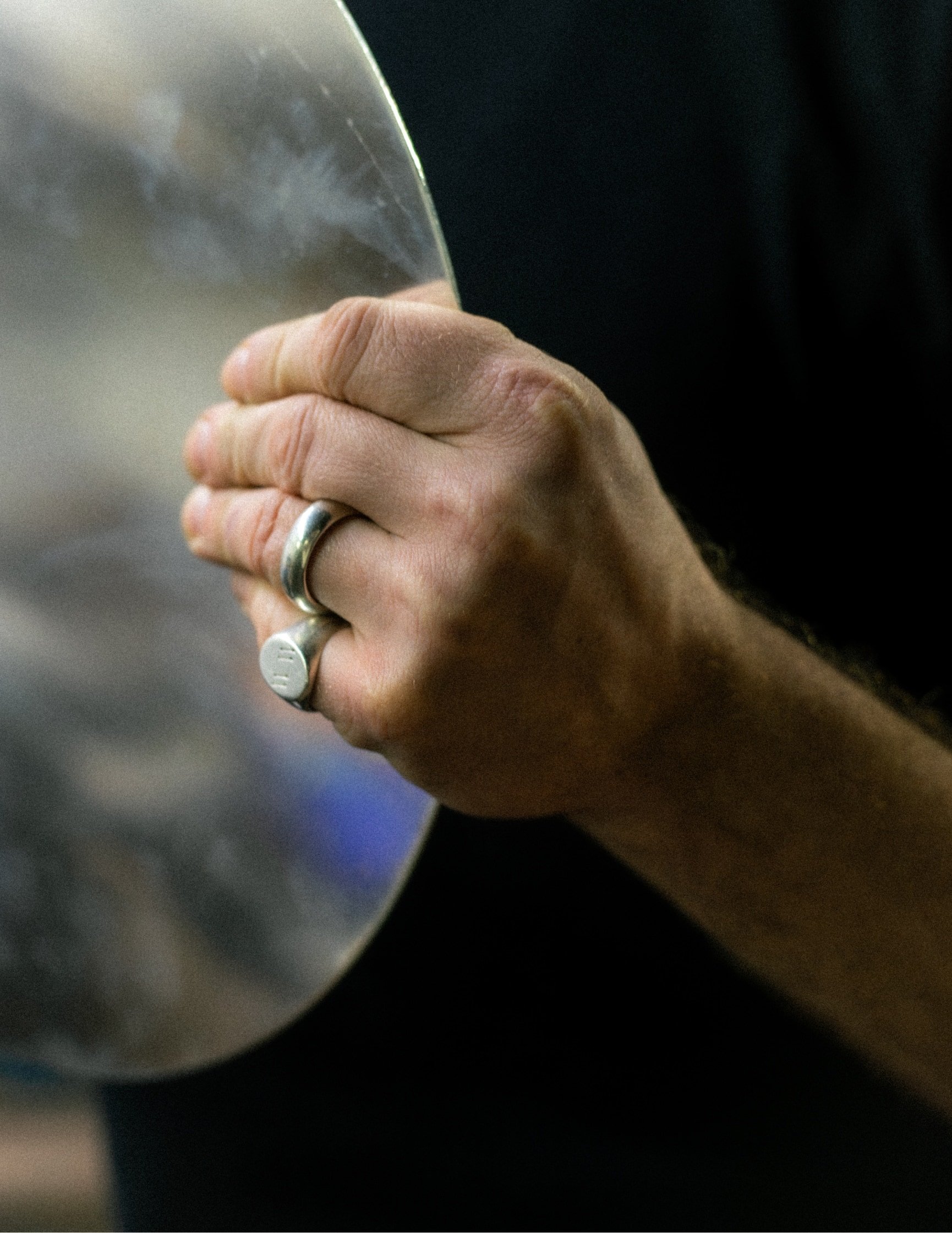 Watching his dad work with metal, Warren learned early what it meant to make something using your own hands. “He insisted that I get myself a trade,” Warren tells us. “Except I wanted to go to art college and do something creative.” Silver spinning is where those instincts met: a craft rooted in skill and repetition, yet rarely recognized as the foundation of how things are made. That starting point is what draws him to the work.