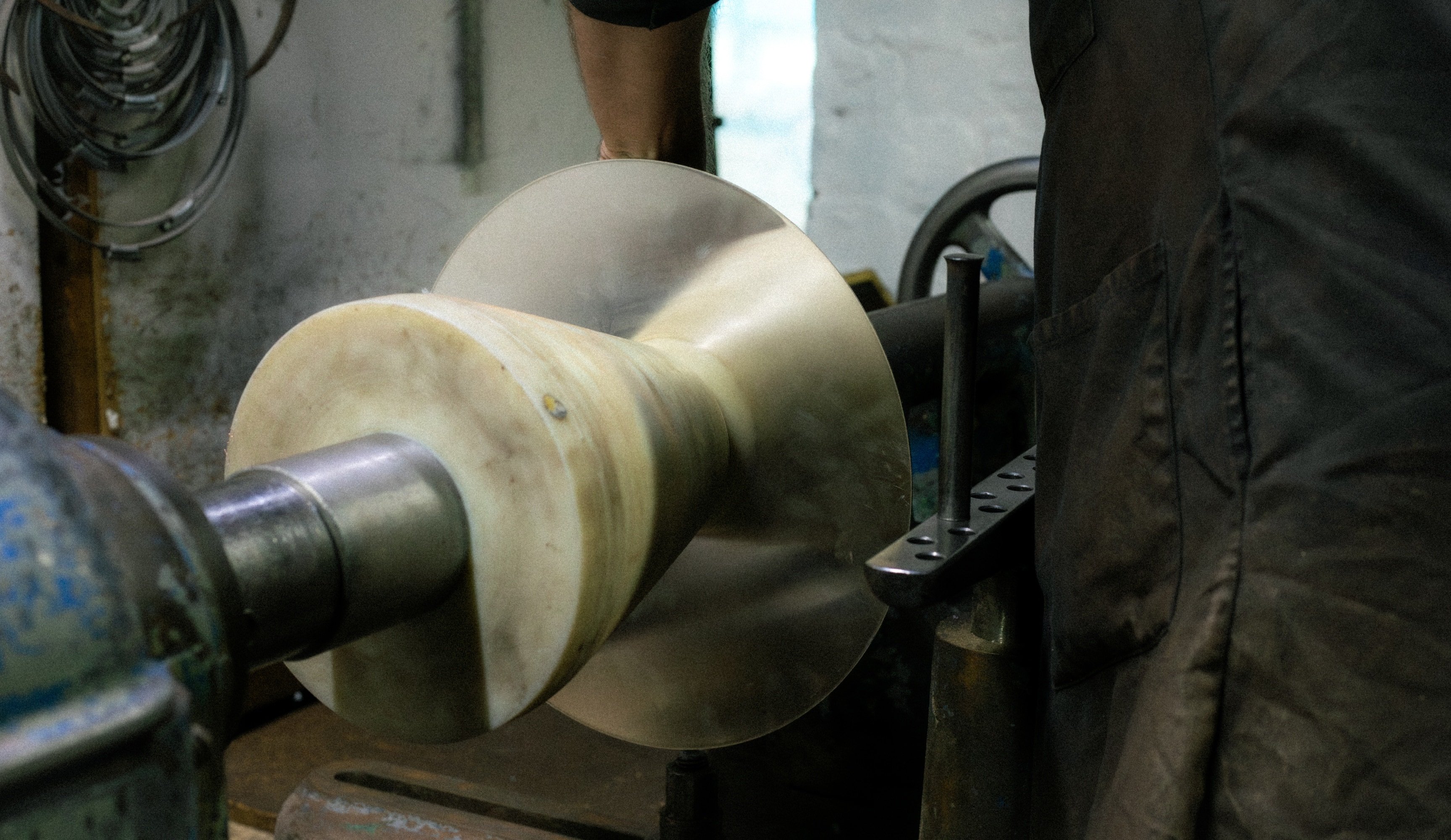 Watching Warren work, it becomes clear that silver spinning is difficult to do well. The challenge isn’t learning the technique, but being able to repeat it consistently, at speed, without compromising the material or the form. Warren is among the last generation trained to do so. In the UK, he’s one of only two silver spinners under the age of 50, and the craft itself is now considered critically endangered.