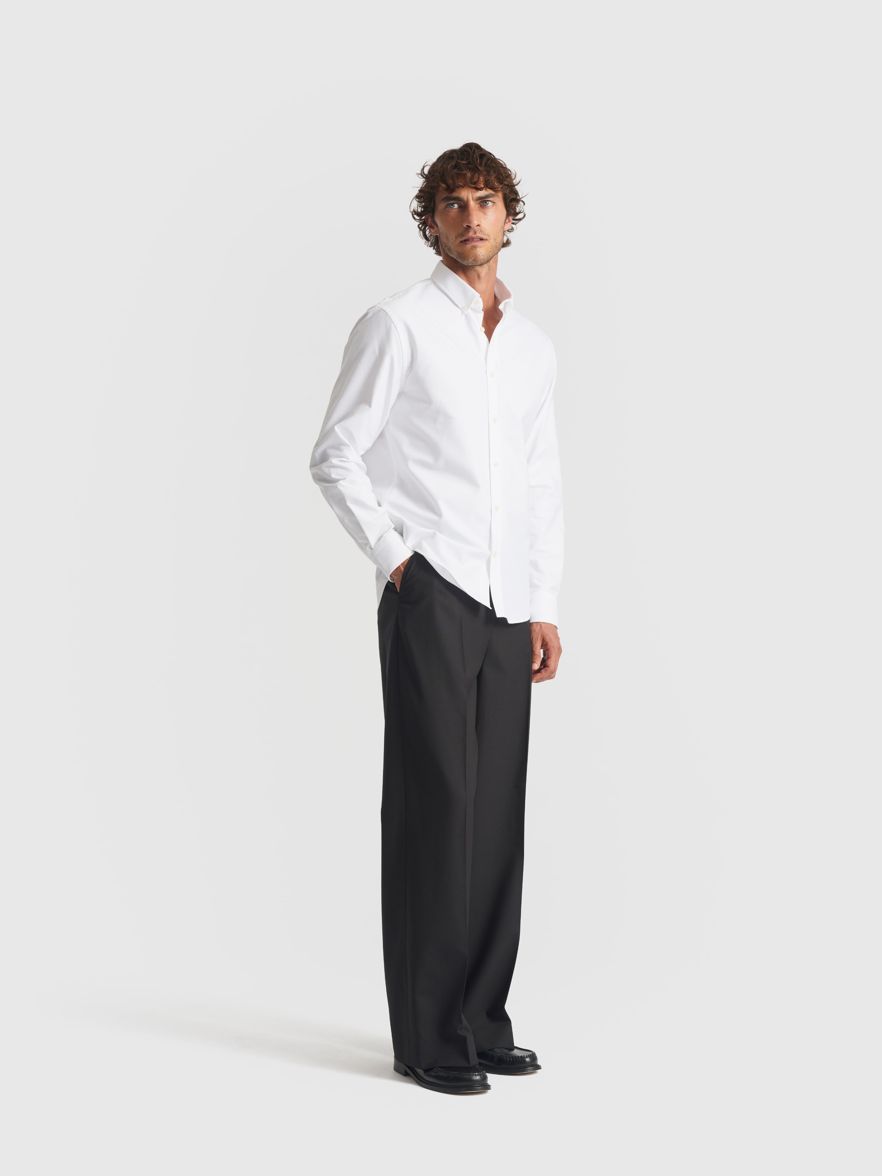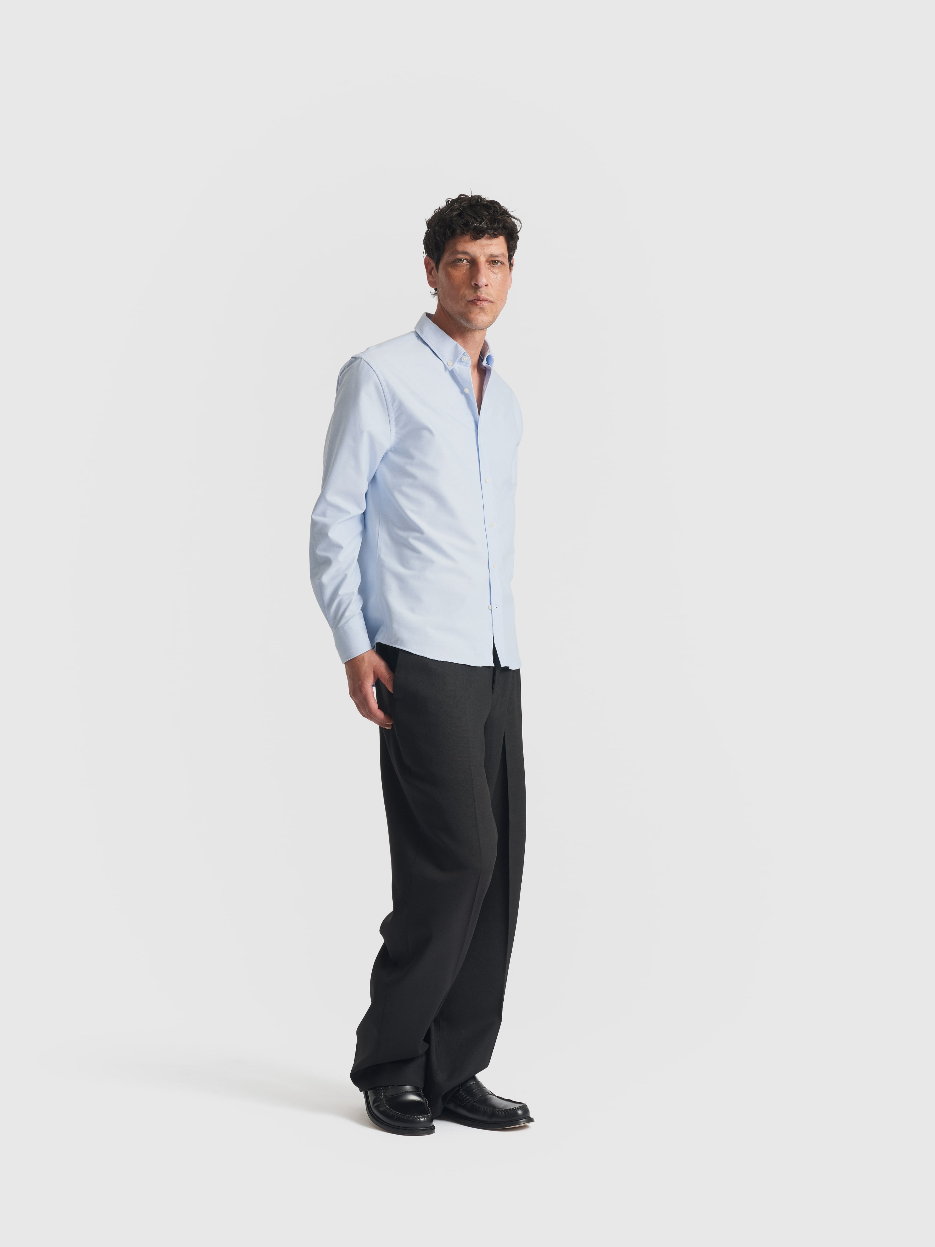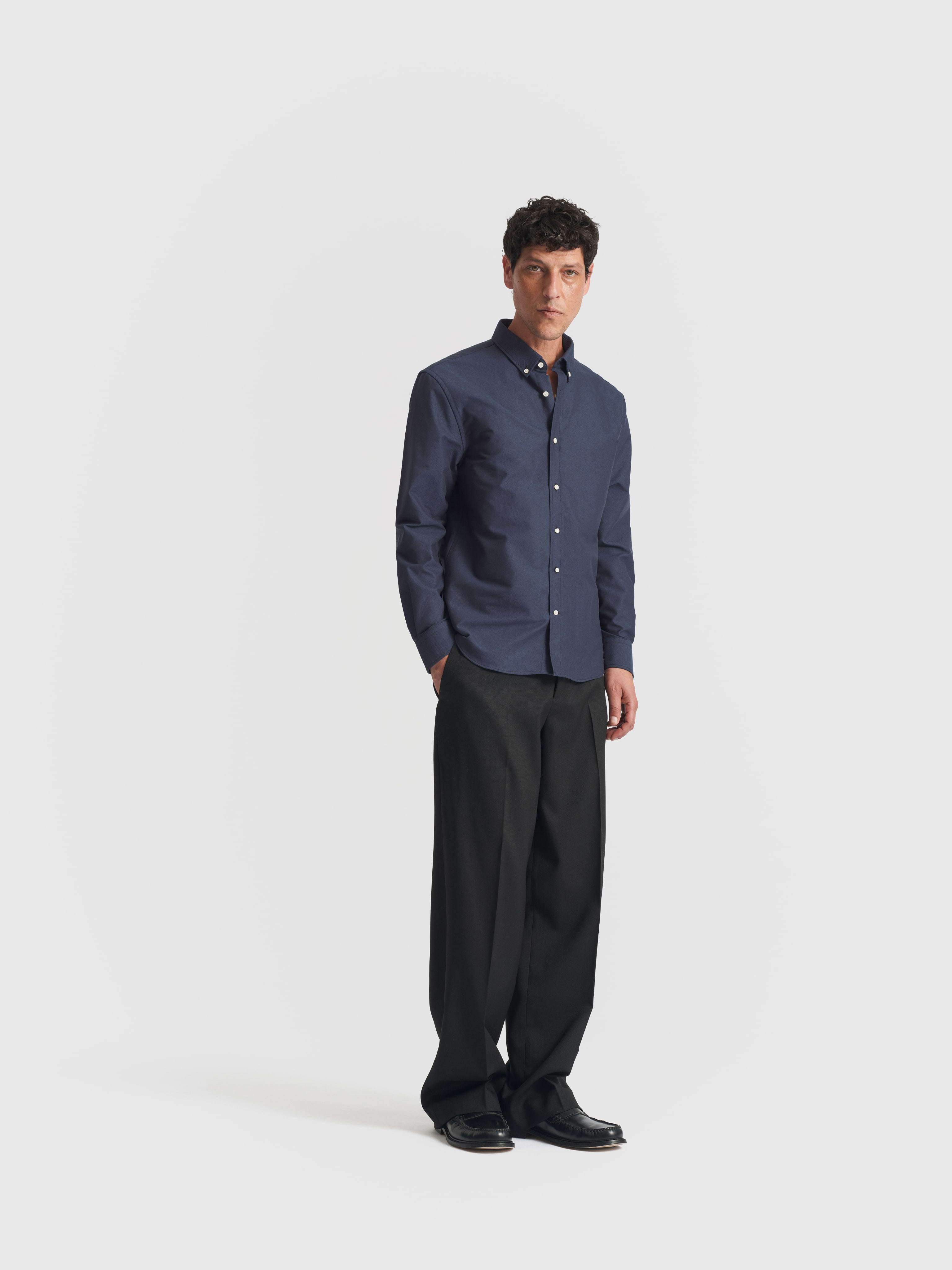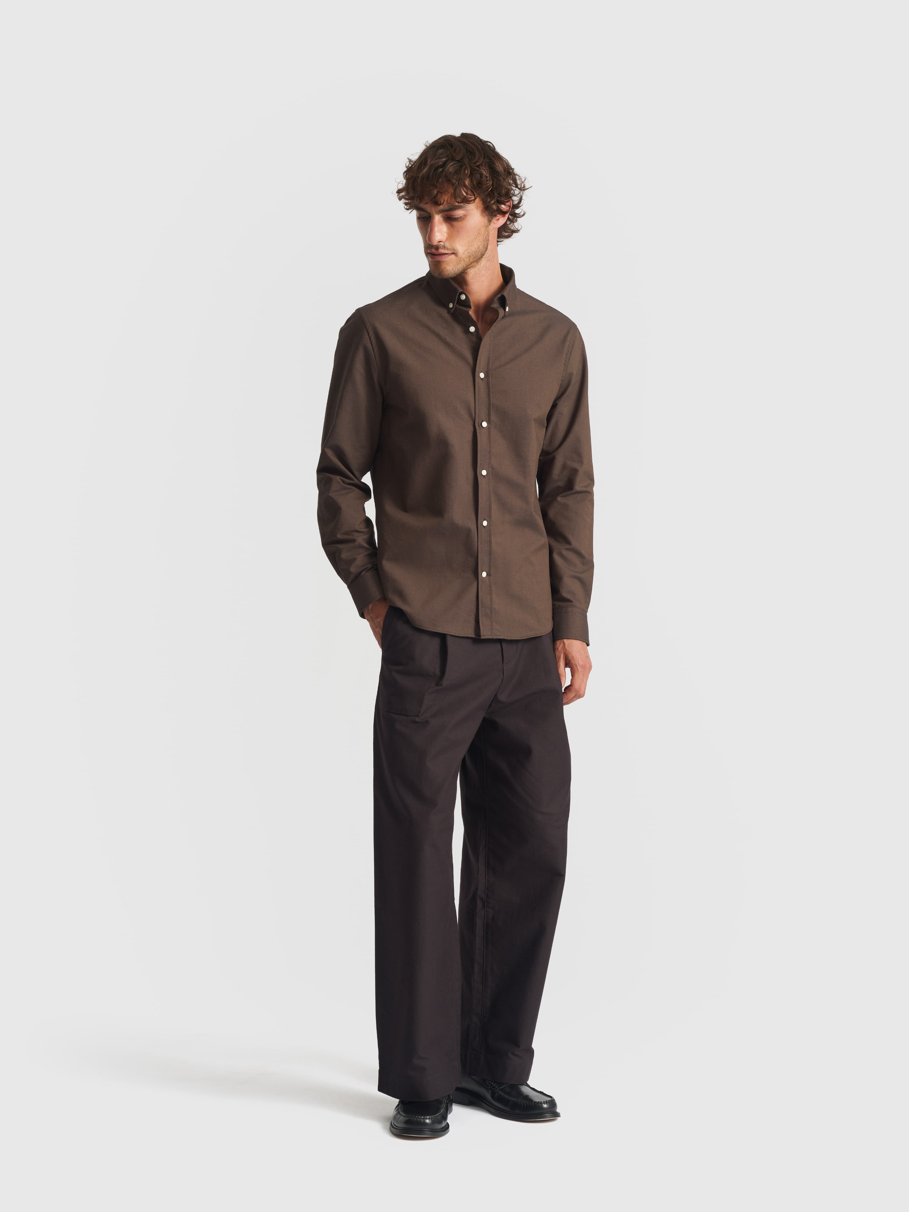 For now, our Oxford currently comes in white, navy, pale blue, and brown, a deliberately tight palette that covers the full spectrum of a modern wardrobe.