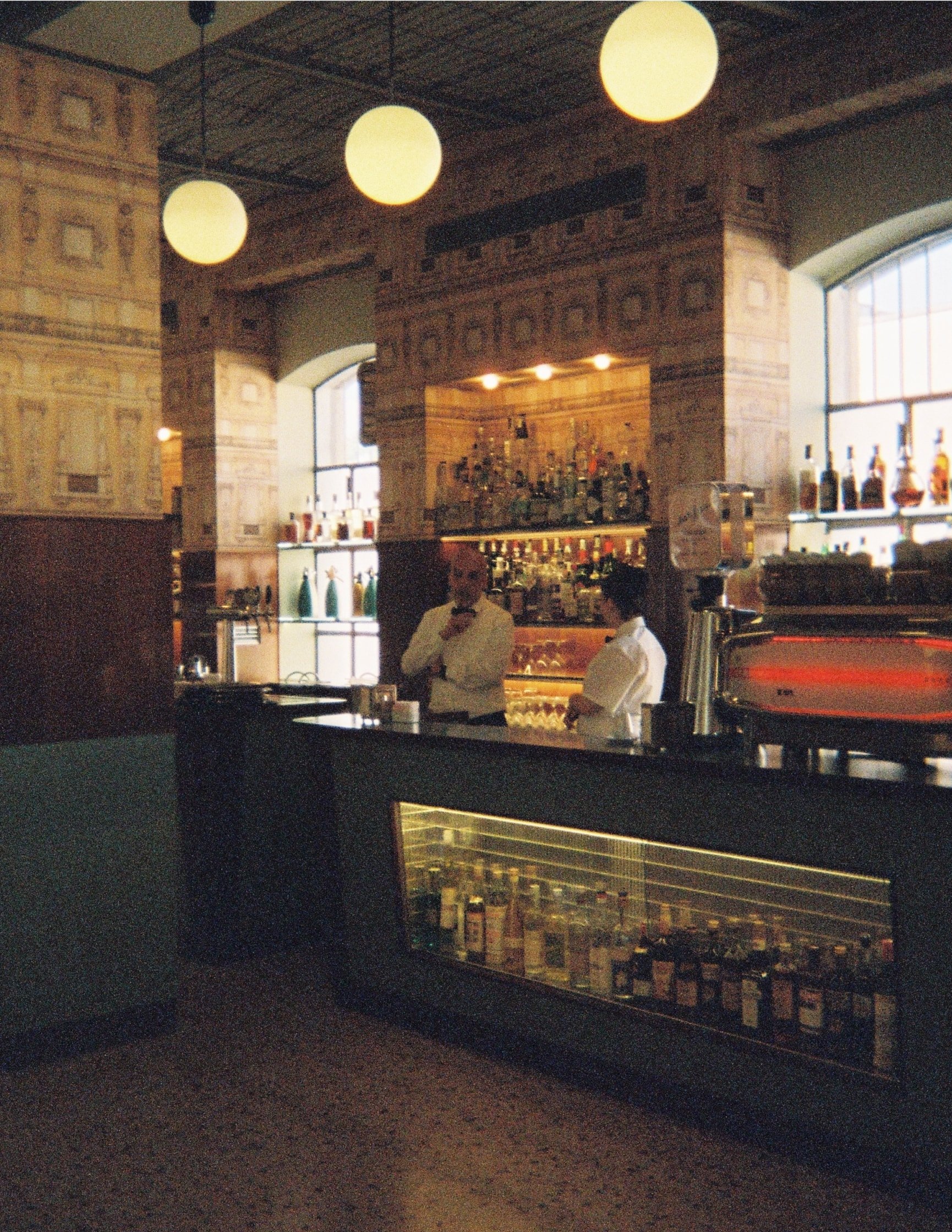 “Located within Fondazione Prada, this bar was designed by Wes Anderson, one of our favorite film directors. Its retro style—meticulously detailed and also playful—wins us over every time. We love playing pinball or enjoying ice cream served in iconic stainless steel cups.” – Francesco